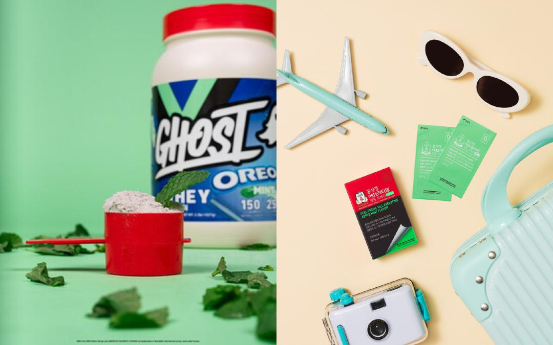 比如蛋白粉,美国运动营养品牌GHOST和奥利奥在今年6月联合推出「薄荷味乳清蛋白粉」,采用注入天然消化酶的100%乳清蛋白混合物制成,具有甜薄荷味。