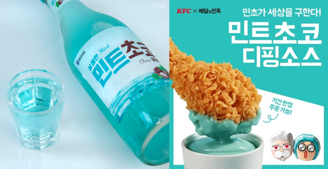 更炸裂的是,炸鸡也能和薄荷搭配,肯德基(韩国)在2022年限时推出了「薄巧味炸鸡蘸酱」,被网友质疑“这真的不是对炸鸡的侮辱吗”。大众对它“肯定不好吃”的期待,加上想尝一尝的好奇心,反倒为它赚取了一波热度。