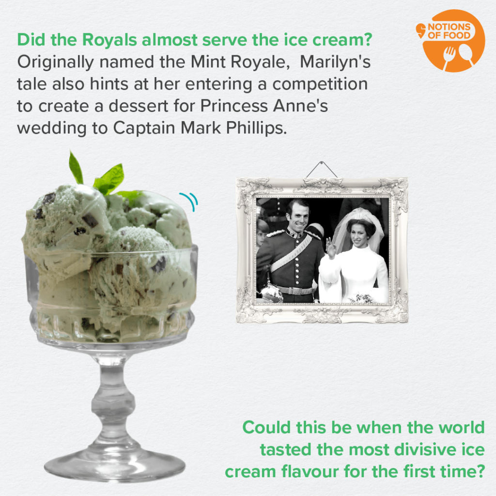 薄荷巧克力的起源可以追溯到1973年的英国。当时,英国女王伊丽莎白二世的女儿安妮公主正在筹备婚礼,婚礼上举行了一场甜点比赛,一位名叫Marilyn Ricketts的参赛者凭借「Mint Ryale-薄荷巧克力冰淇淋」获胜,世界上最早的薄荷巧克力就此诞生。薄巧冰淇淋也成了英国皇室的最爱。