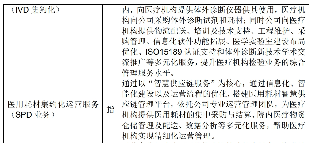 SPD业务主要开展的模式分为集采集配和运营服务外包模式,相较于IVD业务,SPD业务下的运营服务外包模式的收入来源还多了一定比例的服务费。