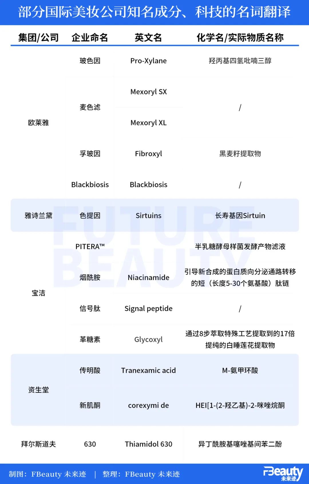 在这些成分、技术名称翻译的过程中,《FBeauty未来迹》总结出一些规律: