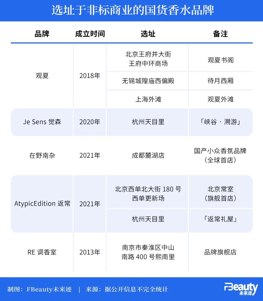 从创立时间来看,这些在今年上半年开出新店的香水品牌大多数都“不到五岁”,且以在疫情后创立的新锐品牌居多。