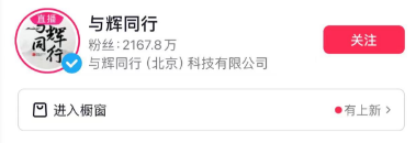另一边,与辉同行账号一晚上狂涨了十万多粉丝,与辉同行抖音账号的粉丝数已经达到了2167.8万人。就在今天中午,与辉同行抖音账号还在热热闹闹的进行直播,观看人数超过4万人,粉丝们都在直播间留言道“恭喜与辉同行”“支持与辉同行”“与辉同行长虹”......