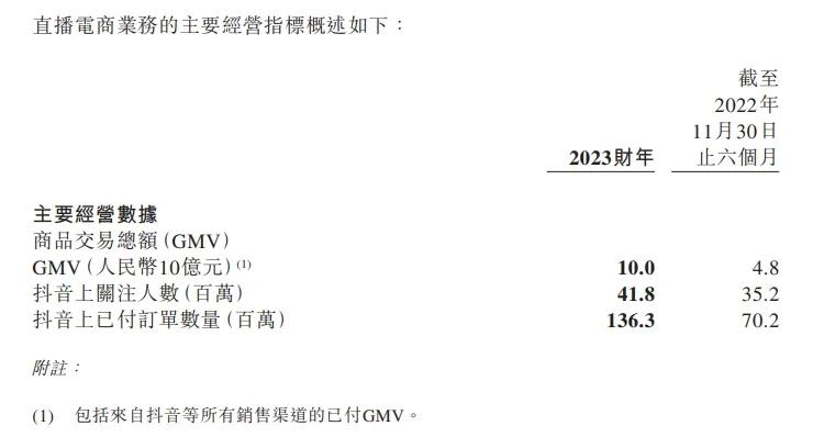 不仅如此,如果去看东方甄选2023年的年报,可以发现,2022年东方甄选营收6亿元的时候,销售费用有2.7亿元,占比45%,也就是说公司赚的每一块钱都是用将近5毛钱的广告和促销折扣换来的。到了2023年,东方甄选营收达到45.1亿元,同比增长了652%,而其销售费用仅有6.2亿元,同比增长130%,占总营收只有13.7%。这说明,董宇辉的爆红给东方甄选带来了极大的自然流量,这不仅增加了其营收,更节省了其对于流量投入的费用。