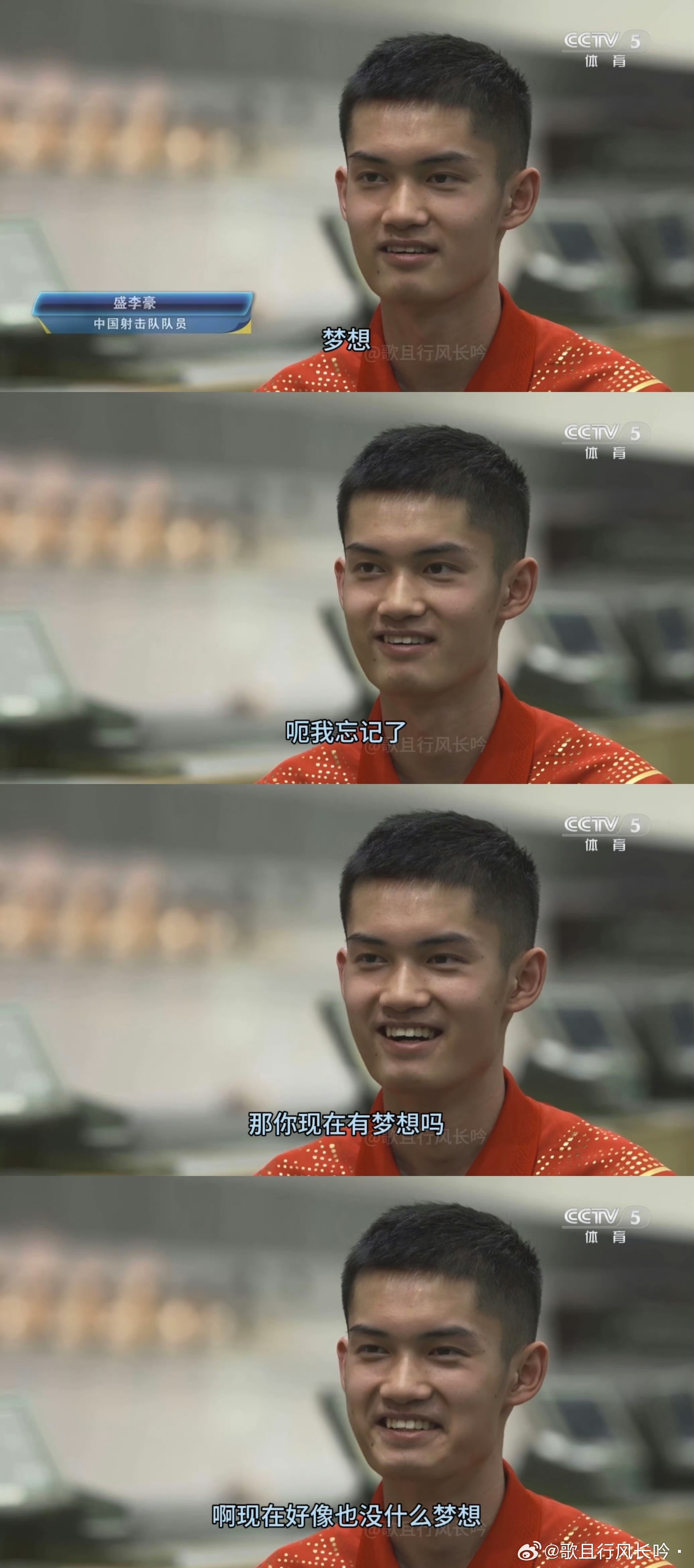 与努力的艰苦相反,我们想看到是运动员舒适快乐的那部分。因为这种社会心态的转换,所以我们会去强调运动员在日常生活中是个很好玩的人,或者说他在领奖台上做了一些有趣的事情。短视频中有一个镜头是男子10米气步枪冠军得主、19岁盛李豪的赛后媒体采访。记者问有什么梦想,盛李豪有点愣住了,露出了腼腆的笑容,说他没有什么梦想。我看到这个片段在想,为什么剪辑师要把这个片段剪进去?大家为什么会觉得一个19岁的男孩子在得了奥运冠军之后告诉记者他没有梦想是一个很好玩甚至有点萌的事情?我其实不觉得他萌,甚至觉得有点可怕。好像这个人活到19岁,他所有的人生意义都是为了在奥运会上拿到这块金牌,完成了这个事情,就没有其他可做的了。
