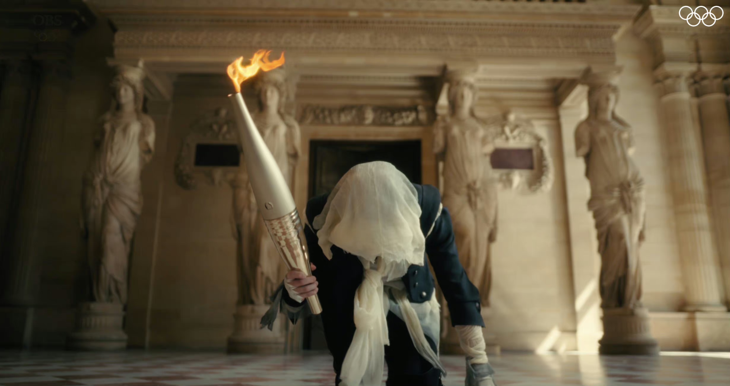 林子人:我觉得,蒙面火炬手最大的意义是他在空间上把一个叙事串了起来,更好地展示了巴黎的各个城市建筑。考虑到这一次开幕式的主舞台是塞纳河,通过调度火炬手的位置和视角可以把不同的表演场地串起来。