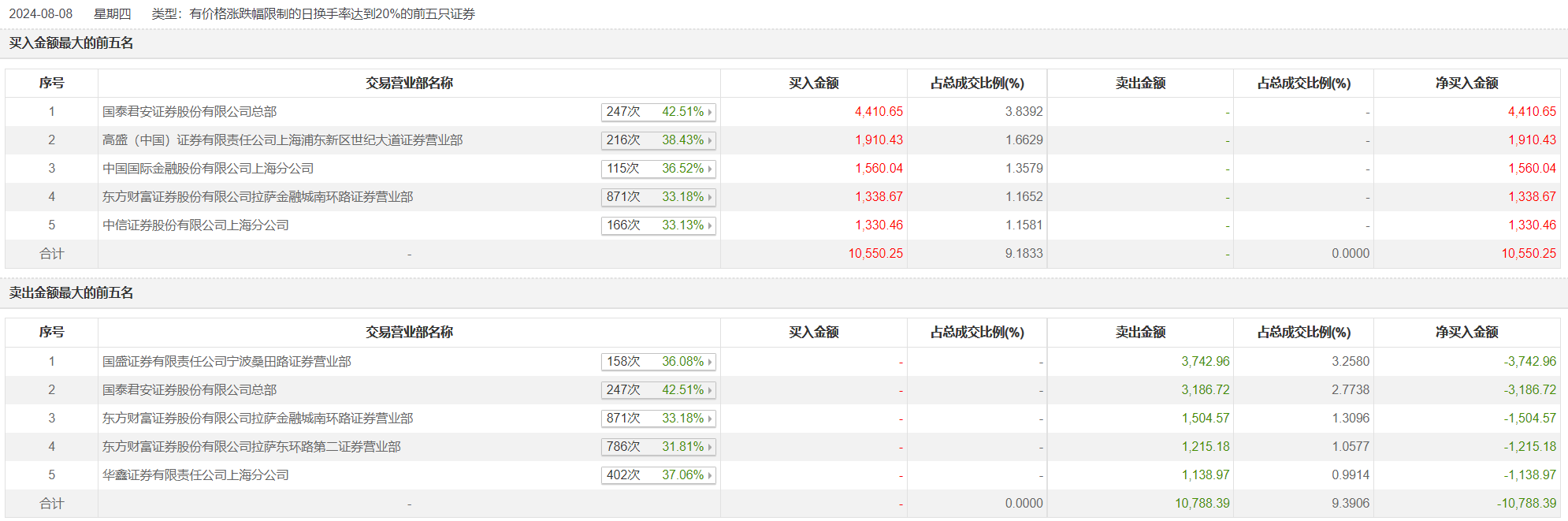 具体来看,知名游资现身龙虎榜,宁波桑田路(国盛证券宁波桑田路证券营业部)、国泰君安证券总部分别卖出3742.96万元、3186.72万元;国泰君安证券总部、高盛(中国)证券上海浦东新区世纪大道证券营业部分别买入4410.65万元、1910.43万元。