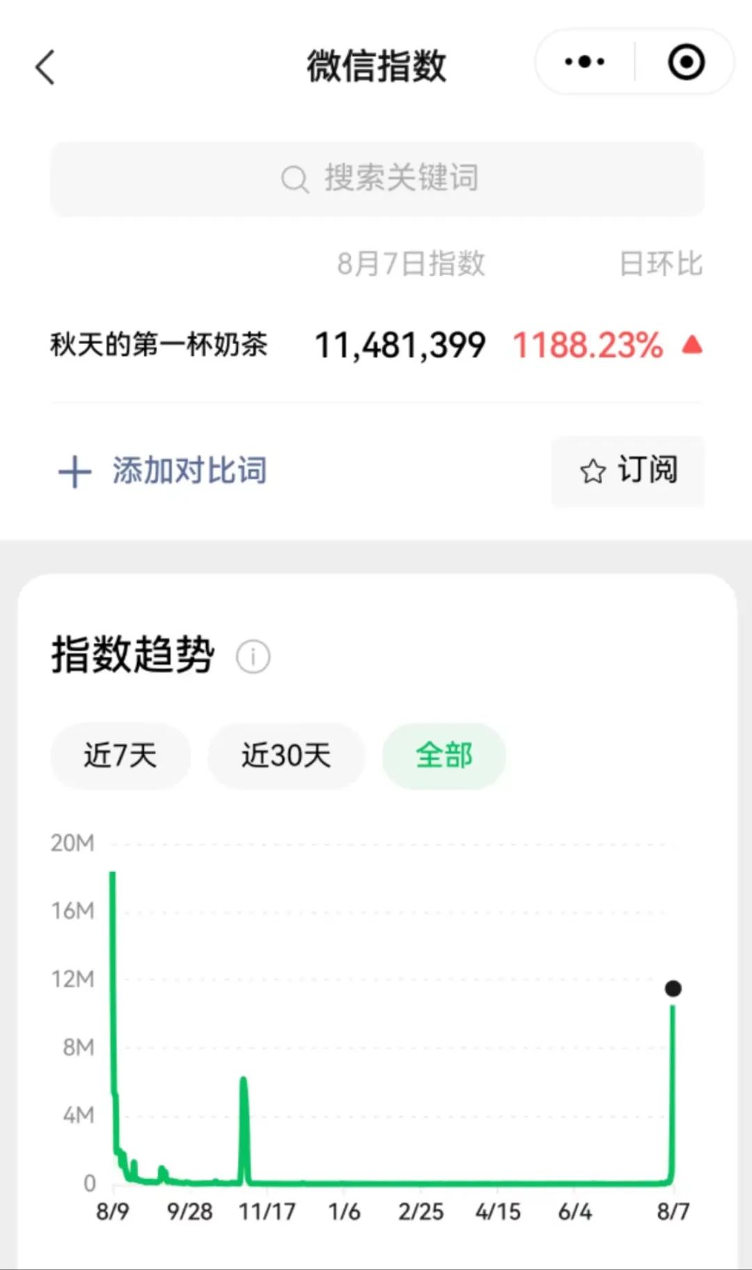 据说服务多个茶饮品牌的“企迈科技”发布的数据显示,立秋当天总订单量突破3200万杯。