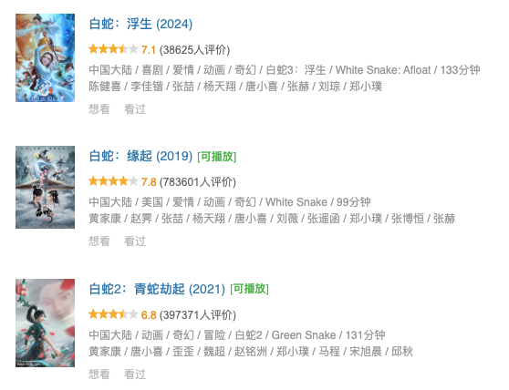 而在《白蛇:浮生》中,片方需要将家喻户晓的白蛇与许仙的故事重新演绎,在大众熟稔的《新白娘子传奇》等经典文本的基础上,又要与《白蛇:缘起》和《青蛇劫起》构建起能够自圆其说的叙事逻辑,这或许比提升视觉表现力要难得多。