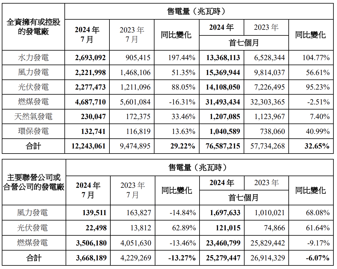 中国电力8月16日在港交所公告,公司及其附属公司于2024年7月的合并总售电量为1224.3061万兆瓦时,较去年同期增加29.22%;而2024年首7个月的合并总售电量为7658.7215万兆瓦时,较去年同期增加32.65%。