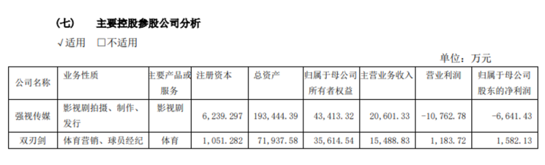 2018年是体育大年,从事体育营销的双刃剑营收为6.42亿元,净利润为1.22亿元,妥妥的优质资产;但到了2019年,双刃剑体育营收锐减至1.55亿元,净利润仅1582.13万元,甚至不如业绩对赌前的业绩表现。