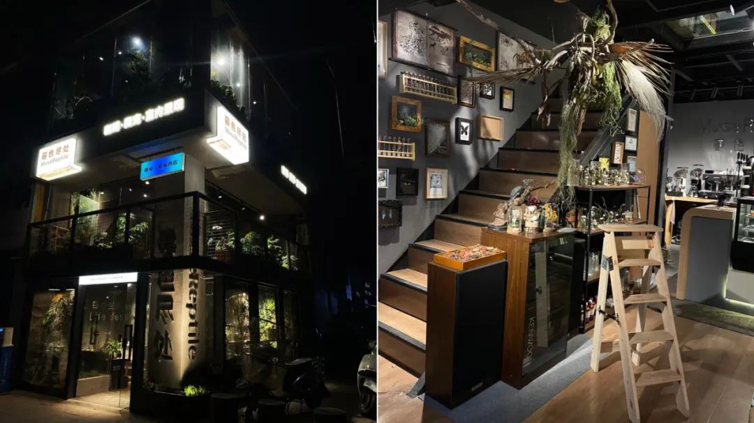 比如王先生的爬宠馆,一二层是咖啡馆,三楼是爬宠互动体验区,“对爬宠不感冒的顾客,可在楼下喝咖啡。”“经常会去上海拍竞标豆,保证咖啡的品质。”