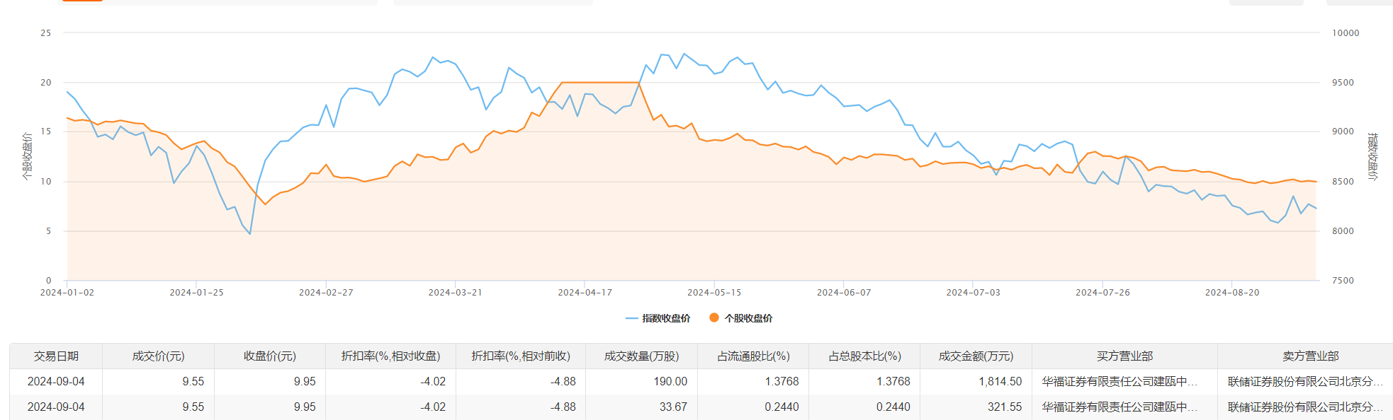 登云股份9月4日大宗交易成交223.67万股,成交额2136.05万元,占当日总成交额的57.63%,成交价9.55元,较市场收盘价9.95元折价4.02%。