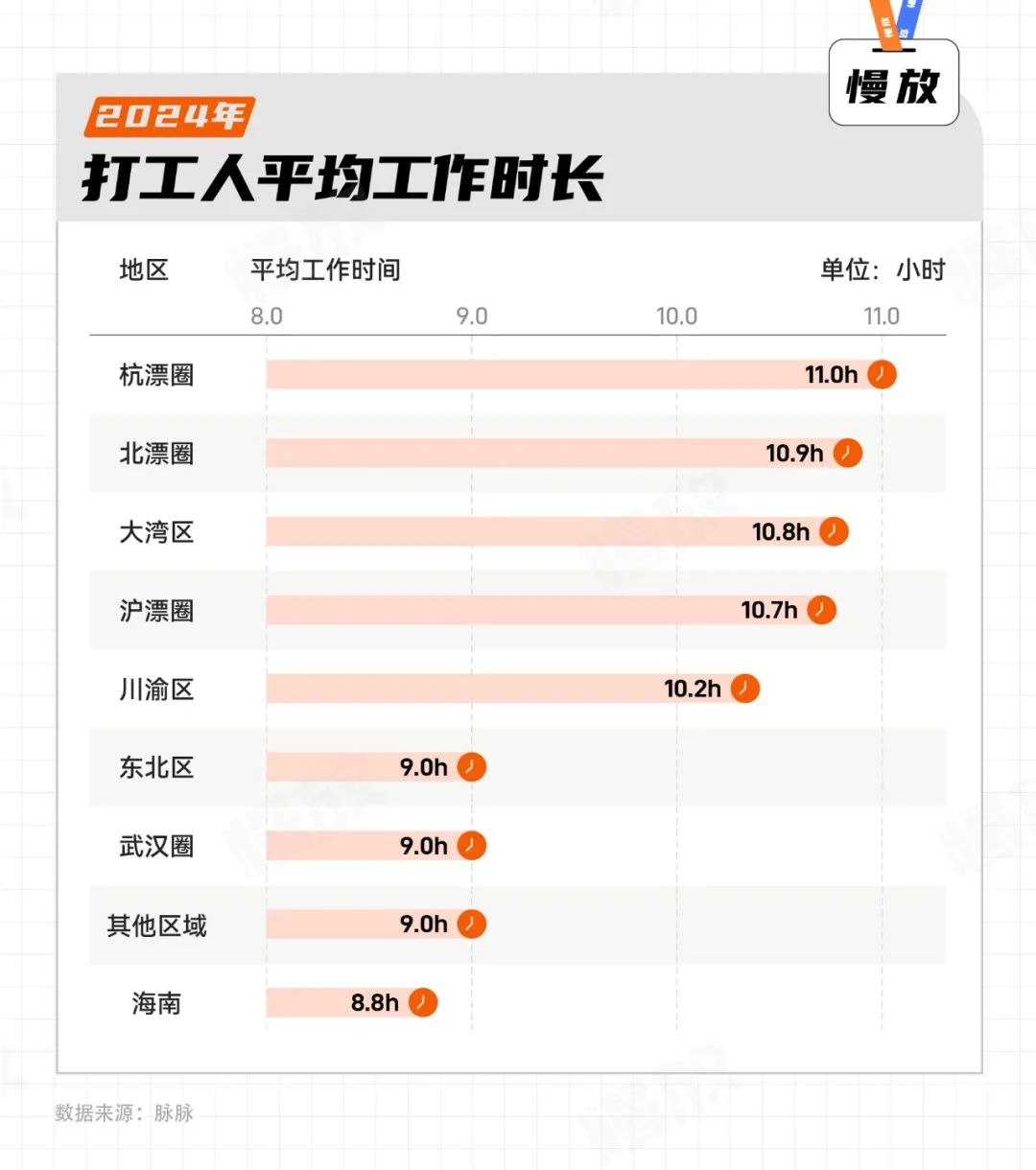 在脉脉的一份数据中,我们看到杭漂圈、北漂圈、大湾区、沪漂圈和川渝区的平均工时均超过了10个小时,其中杭漂圈最卷,平均工时达到了11小时,而在大厂这一数字可能更高。在脉脉#一人一句,大厂工时爆料#话题下,不少大厂员工自曝每天工作12个小时已经成为常态。