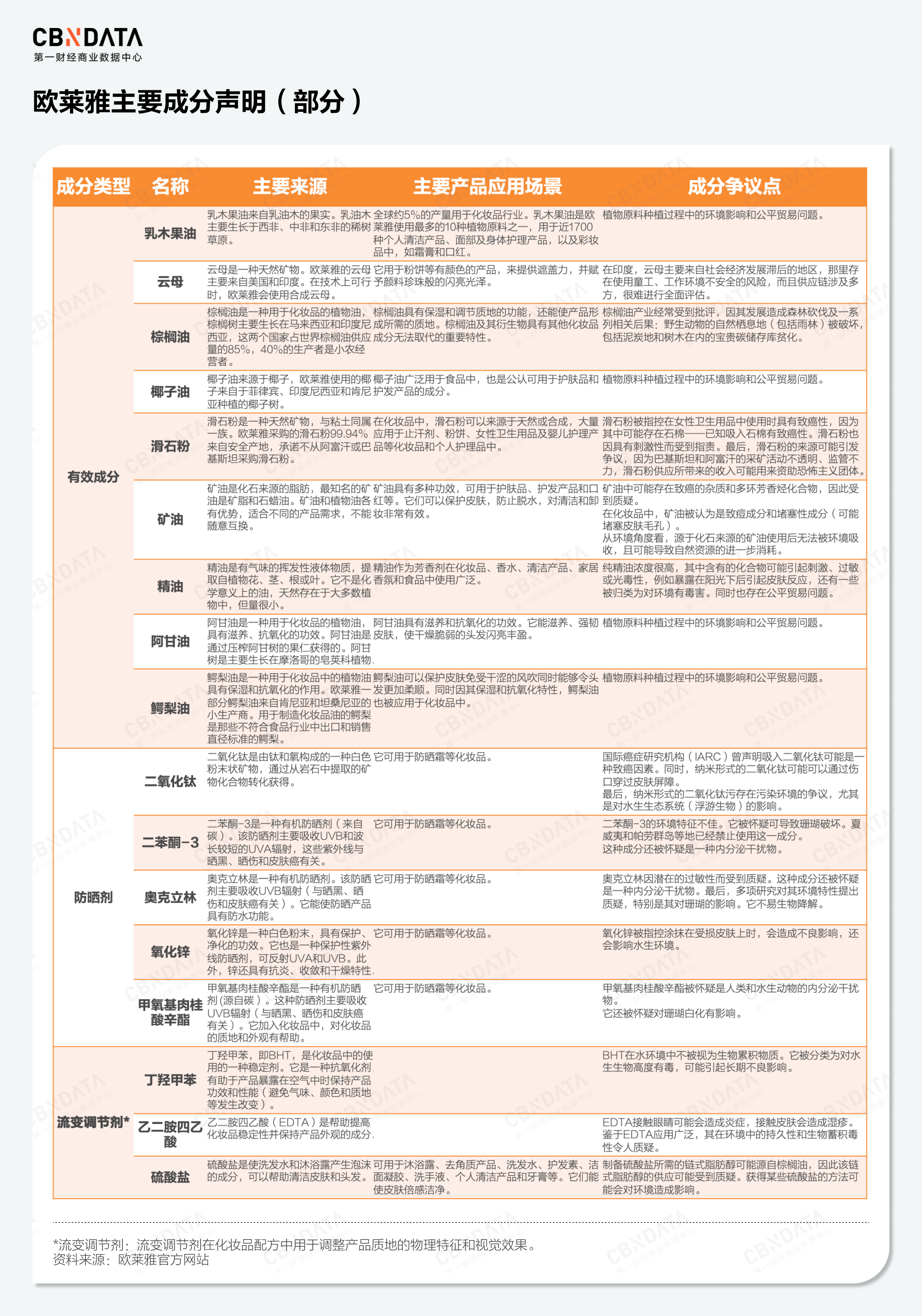 企业依赖产品流运转、依赖信息流决策、依赖资金流生存。一般而言,产品流与产品的成分功效、安全性、稳定性以及环境影响直接挂钩,并包含着价格和成本等关键信息,资金流则与社区和人的影响紧密相连,有赖于各个角色间的博弈关系。虽然企业在对外说明负责任采购时会将人的影响和物的影响区分表达,但在现实采购过程中,物与人并非相互独立的存在,很多原材料的争议点与人的问题紧密挂钩。以欧莱雅官网披露的成分介绍为例,这些信息在某种程度上解释了为什么一种原材料的选择与应用会影响到企业不同的利益相关方。