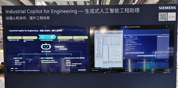 在此次工博会上,西门子展示了该公司首款用于工业环境工程设计的生成式人工智能产品Industrial Copilot。该产品由西门子与微软共同研发,两家公司在去年宣布建立人工智能领域的合作。