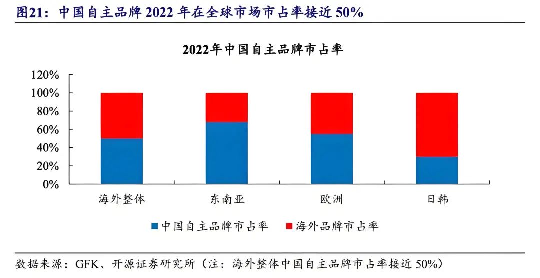 据GFK数据显示,中国品牌推出的扫地机器人在技术上不断革新,截至 2022 年底,中国生产的扫地机器人已占据海外市场近 50%的份额。
