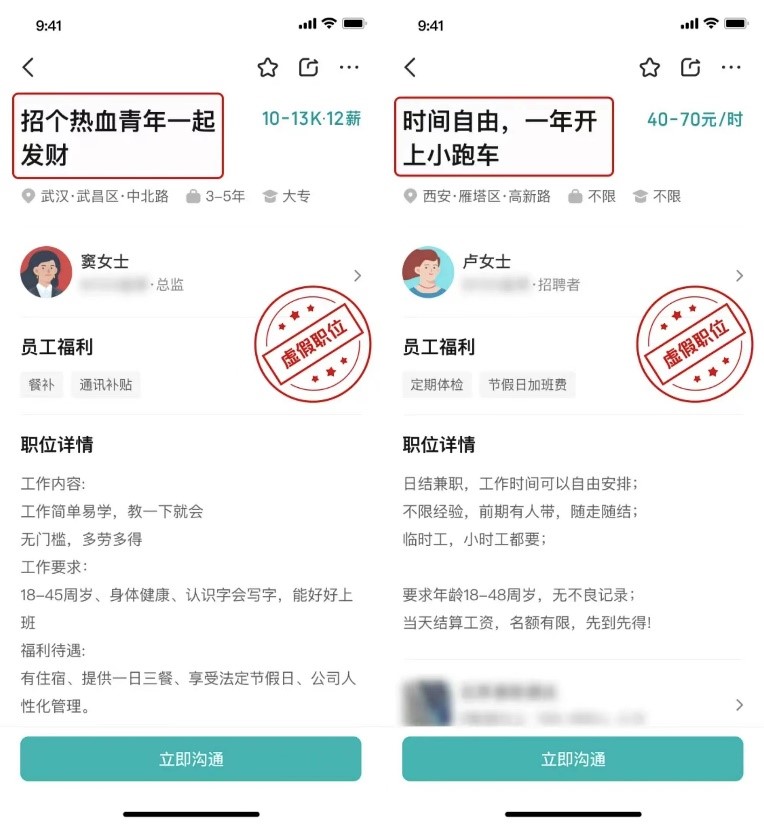 这类虚假职位,通常不是以诈骗为目的,大多不会对求职者的人身安全和财产安全造成威胁,却侵犯了求职者的知情权,严重影响了蓝领的求职体验。