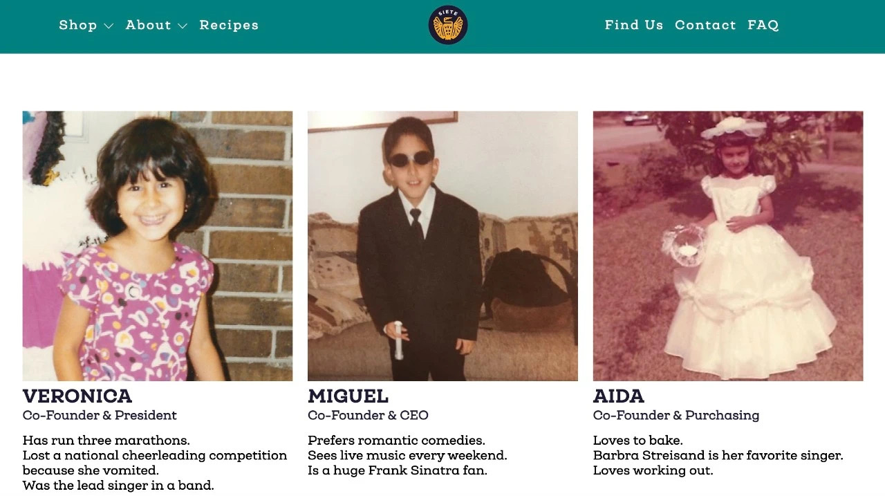 打开官网可以发现,在介绍团队的页面上,并没有“精英职业照”而是许多可爱的童年照。每张照片的下方,都列出了团队成员提供的关于他们自己的两个真相和一个谎言。