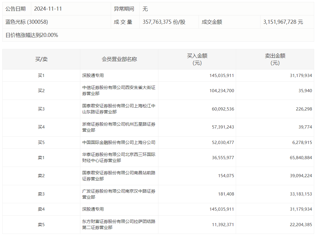 具体来看,知名游资现身龙虎榜,深股通专用、方新侠(中信证券西安朱雀大街证券营业部)分别买入1.45亿元、1.04亿元;华泰证券北京西三环国际财经中心证券营业部、国泰君安证券南昌站前路证券营业部分别卖出6584.09万元、3909.42万元。