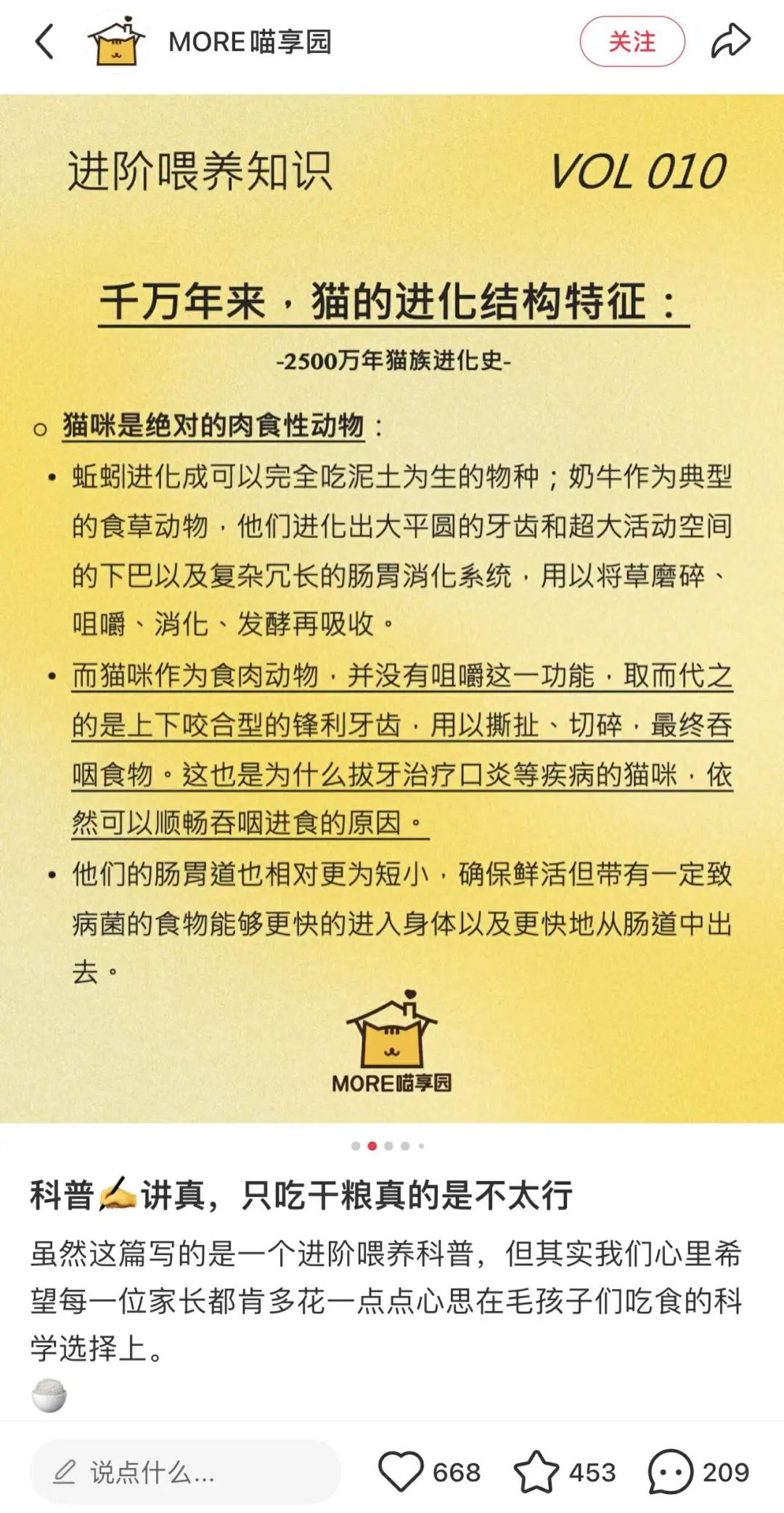比如,猫咪饮食理念从猫粮喂养,到主食冻干、罐罐喂养,再到如今正在兴起的生骨肉喂养,虽然对人来说操作越来越麻烦,但却更加符合猫咪本身的饮食习惯,有益于它们的身体健康,这是属于第一层往第二层过渡。