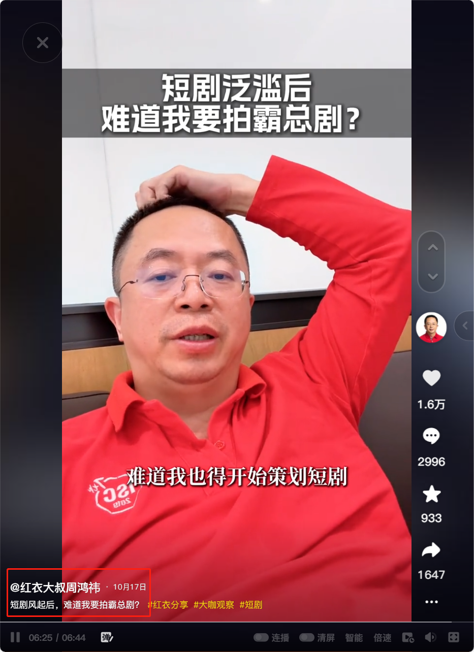“360集团总裁周鸿祎”+“短剧”这两个词条的结合,早就有迹可循,是意料之外情理之中。