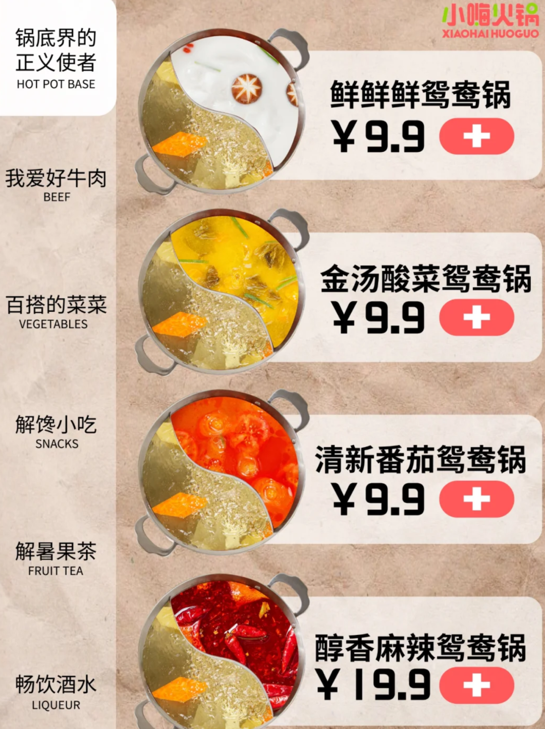 就连以高品质和高价位著称的“火锅一哥”海底捞也推出了“平民锅”,其旗下品牌“小嗨火锅”的锅底价格仅为9.9元起,单人套餐更是优惠至49元。