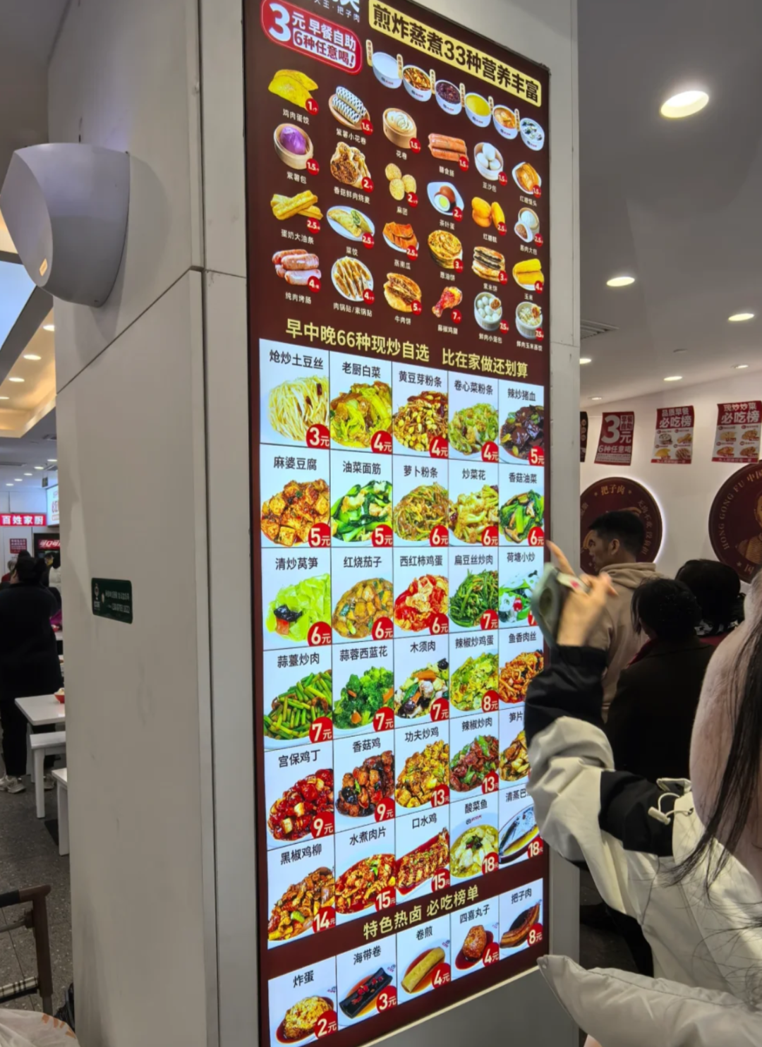 快餐店定价亲民,5块钱的早餐能吃饱,10块钱能买到1荤2素的午饭。