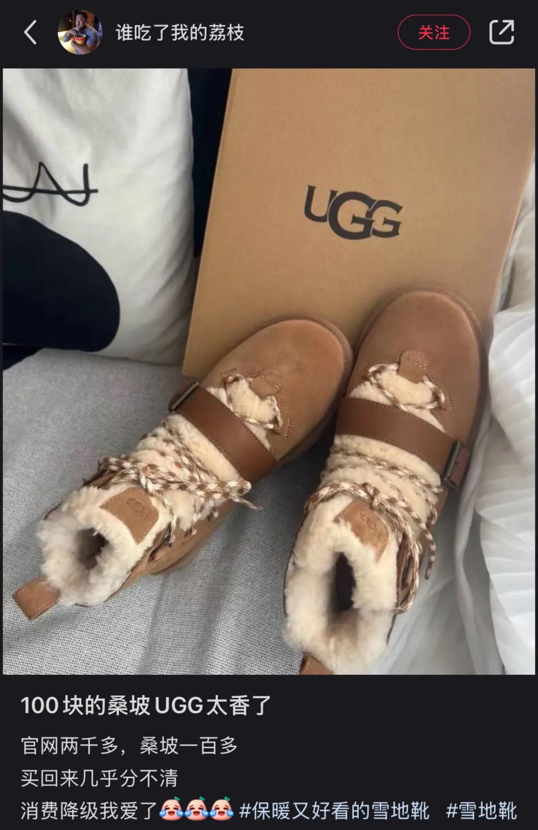 从桑坡打道回府的周一,同事们聊起了小K的新款UGG: