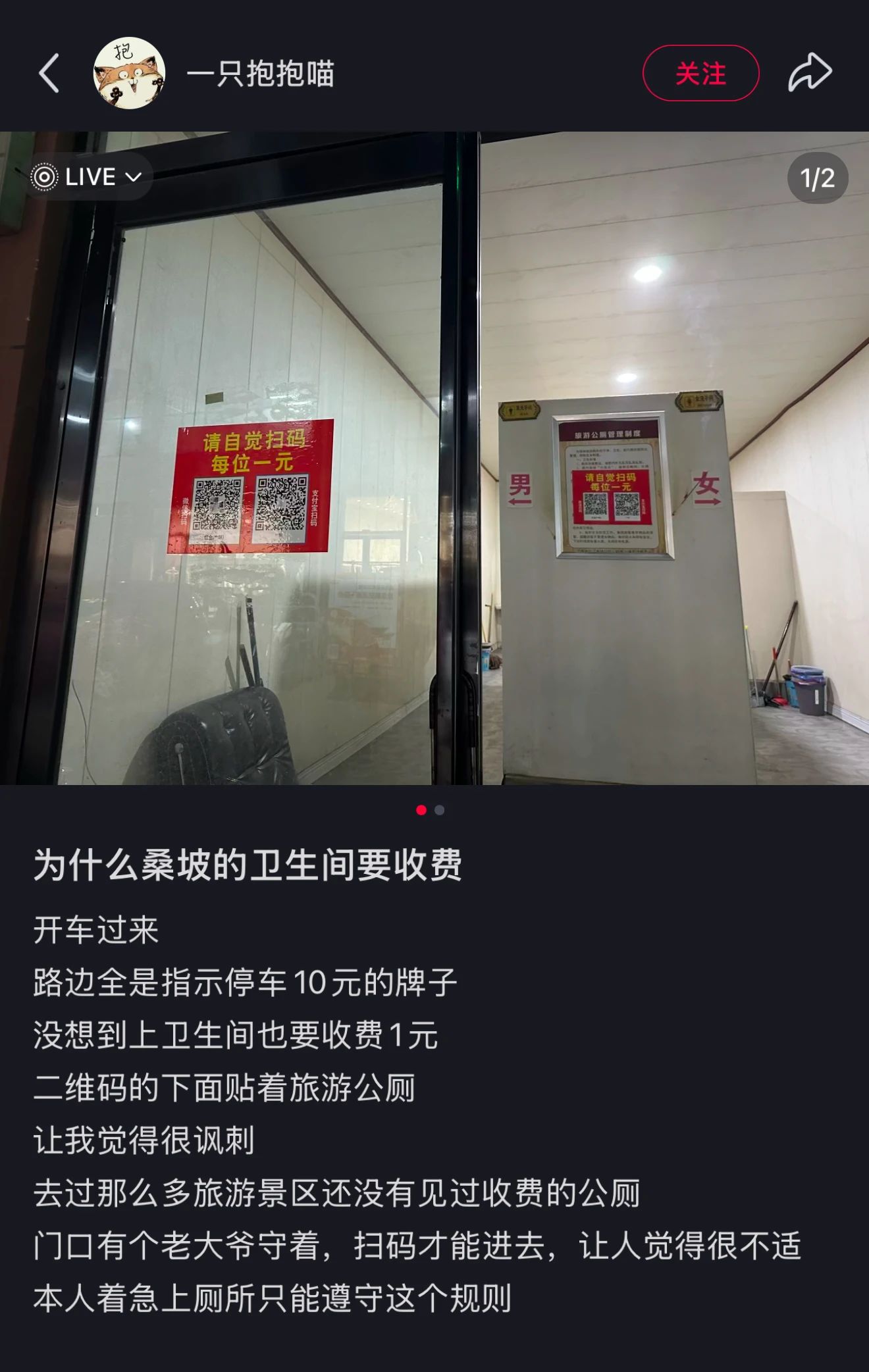 躲在七扭八歪胡同里的公厕,大多用红色的字牌标着“一次一元,扫码入内”的标语。