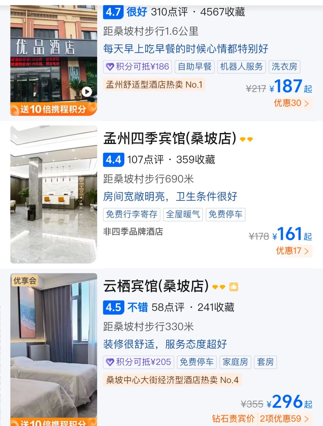 均价180元的镇内住宿,到接近中央街道500米的范围内,立刻变成了300元往上。