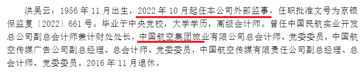 此外,公司副董事长沈洁和外部监事洪吴云也出自中航集团。