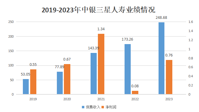 2019年至2023年,中银三星人寿保险业务收入从53亿元增至249亿元,但2022年和2023年净利润却跌至1亿元以下。