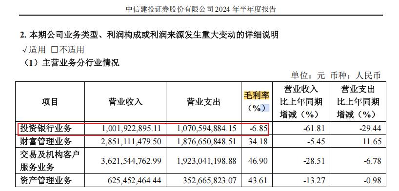 2024年上半年,中信建投的投行业务还首次进入了负毛利率时代,为-6.85%。