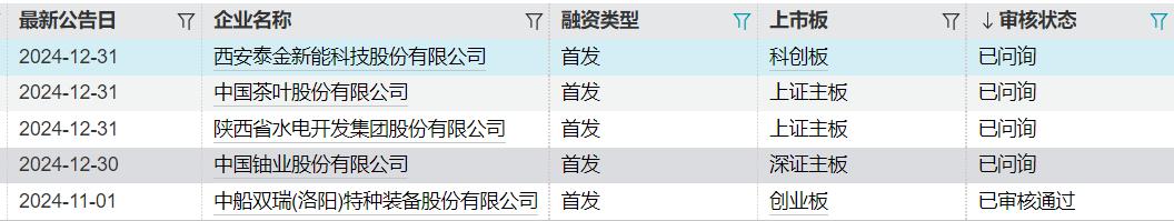 2024年IPO严监管态势下,A股首批进入已问询的5家企业:西安泰金新能科技股份有限公司、中国茶叶股份有限公司、陕西省水电开发集团股份有限公司、中国铀业股份有限公司、中船双瑞(洛阳)特种装备股份有限公司,也都选择了中信建投担任保荐人保驾护航上市并承销。