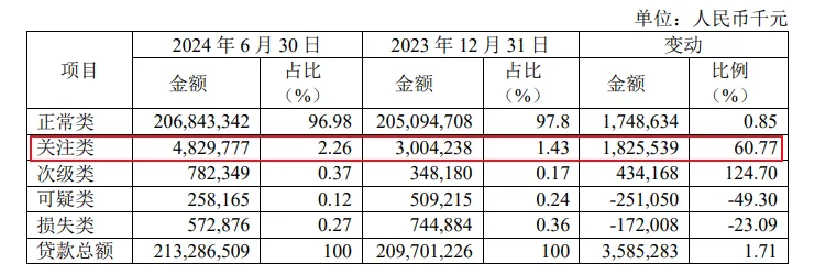值得注意的是,作为银行不良贷款的“蓄水池”,厦门银行的关注类贷款占比持续上升。2021年-2023年,厦门银行关注贷款规模分别为15.91亿元、24.6亿元、30.04亿元,占比分别为0.91%、1.23%、1.43%。上半年,该行关注类贷款金额达48.3亿元,明显高于2023年,占比提升至2.26%。
