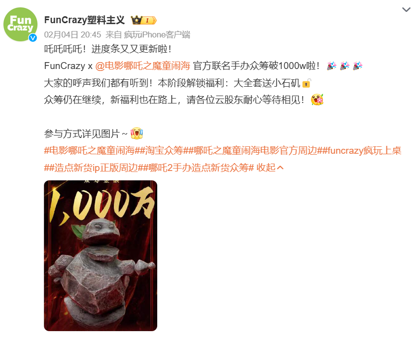 石矶娘娘出乎意料地爆火,FunCrazy加紧众筹
