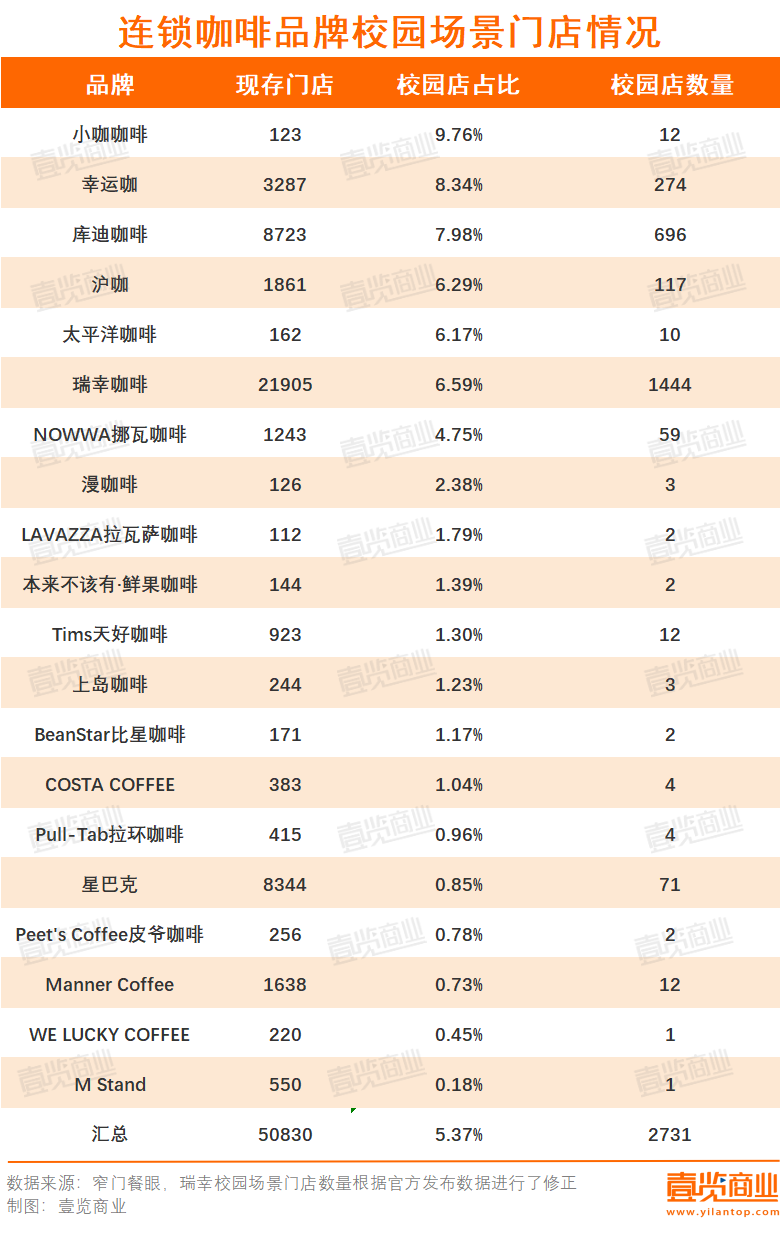 在这些细分点位中,高校成为一个“香饽饽”,几乎所有品牌都想成为“大学生的第一杯咖啡”,瑞幸还在今年新增学校定点补贴,以此吸引加盟商。据壹览商业不完全统计,截至2024年12月,至少有17个咖啡品牌在全国范围内开出超2000家校园店,占门店总数的5.37%。