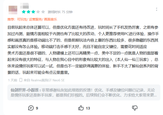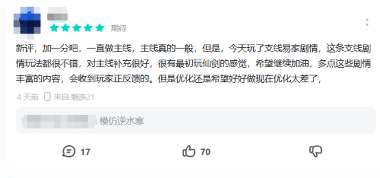 BUG和优化问题是《仙剑世界》目前面临的最大的挑战。即使是重剧情打出五星好评的玩家,也在评价中提出对优化的建议。
