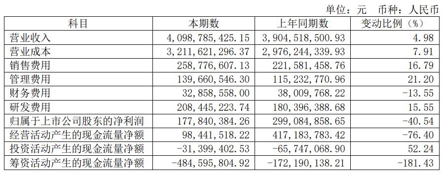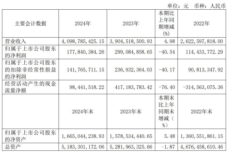 数据显示,2024年,科林电气实现营业收入40.99亿元,同比增长4.98%;实现归属净利润1.78亿元,同比下降40.54%;实现扣非净利润1.42亿元,同比下降40.17%。