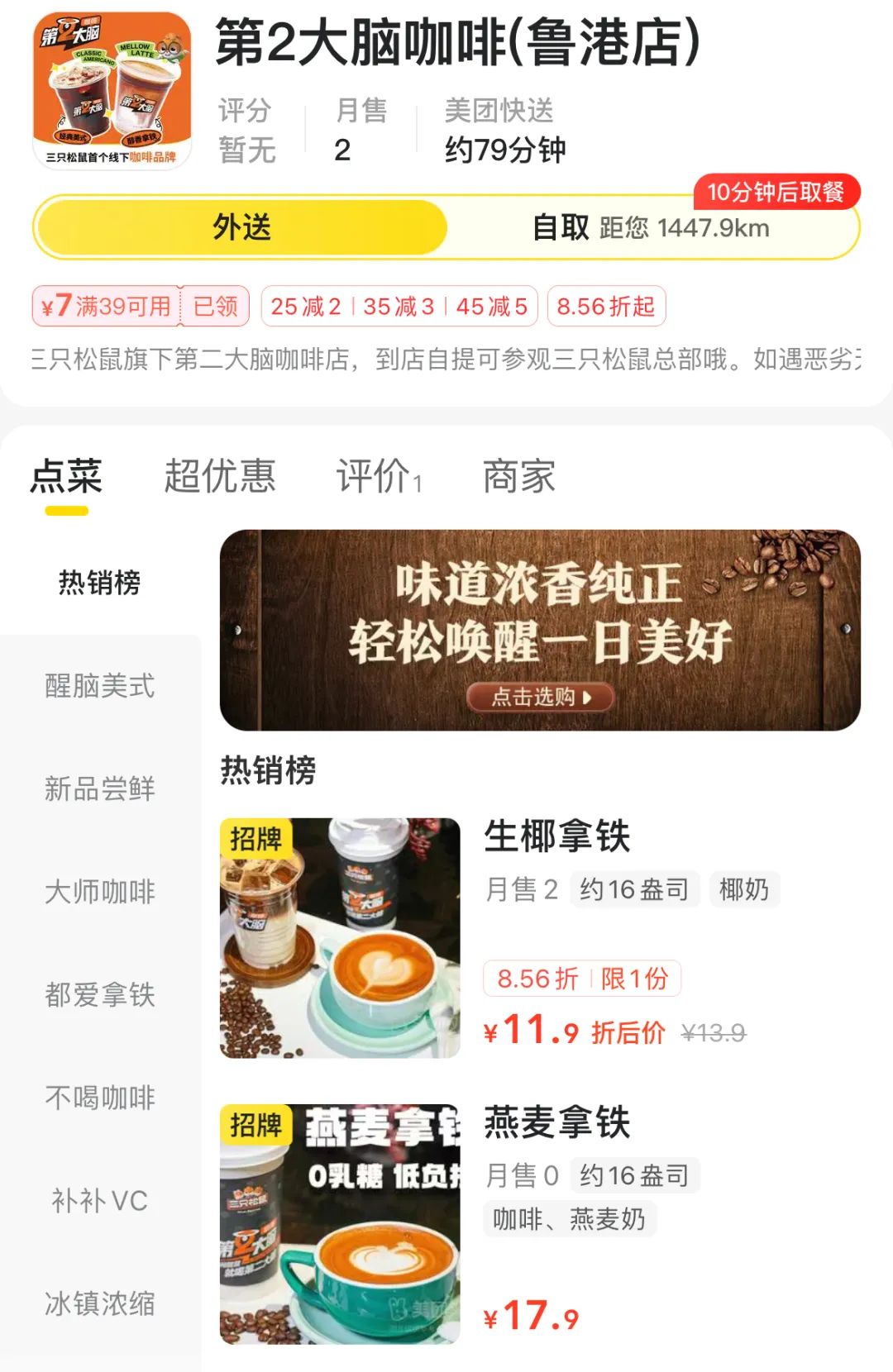 3月4日,红餐网发现第2大脑咖啡首店——鲁港店已登陆美团App,虽未上架团购套餐,但已上线外卖。