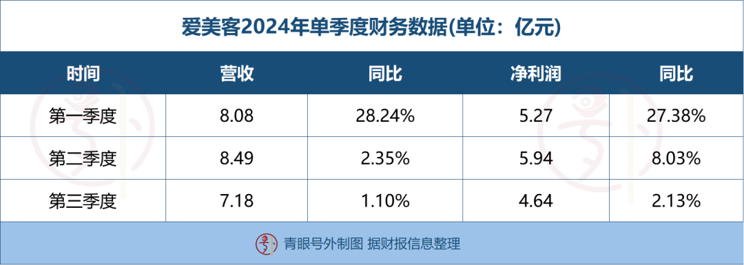 从爱美客2024年单季度财务数据来看,其营收和净利润增速持续下降,尤其是第三季度的营收增速创下上市以来的最低纪录。