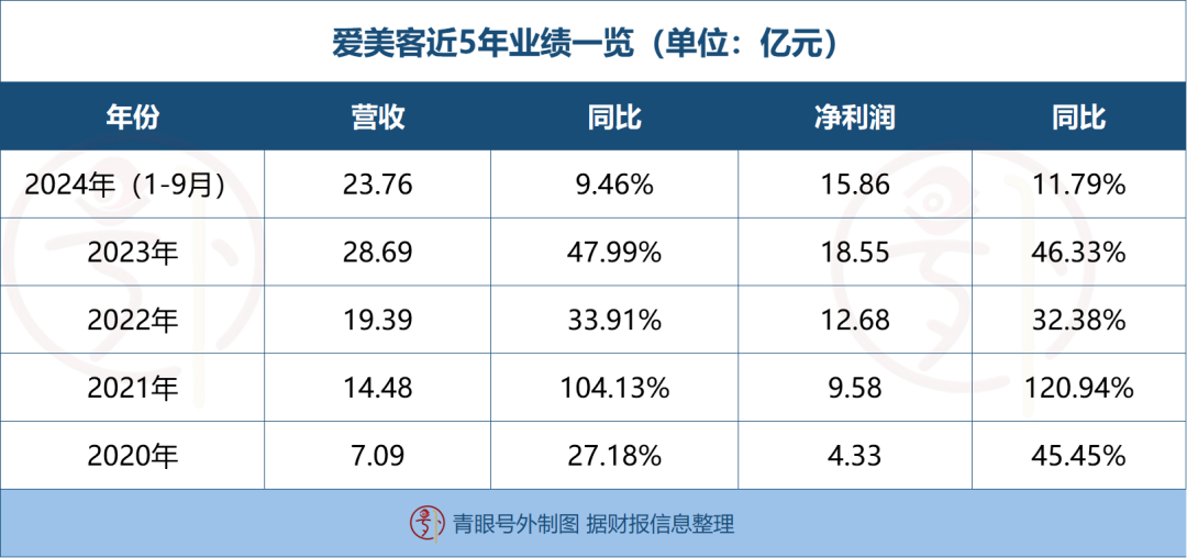 另据青眼梳理爱美客近5年业绩数据,2020年到2023年间,虽然其营收呈增长态势,但2023年的增速相比2021年有所放缓,而到2024年前三季度,增速则降至个位数。在净利润方面,2020年至2023年几乎实现翻倍,但到2024年前9个月,净利润增速则降至近年来最低水平。