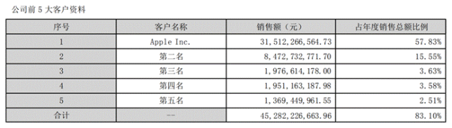 图/蓝思科技前五大客户资料,来源/蓝思科技2023年财报 融中财经截图