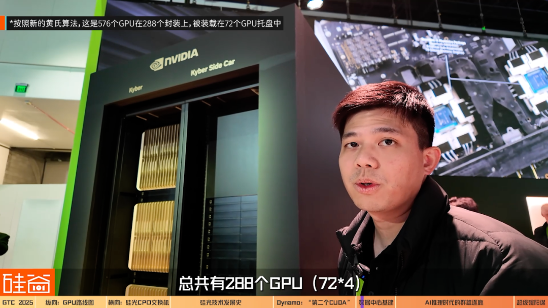 这个是我们未来的Kyber Generation,是下一代产品。这就是一个72个GPU的GB200,总共有288个GPU(72*4) 。