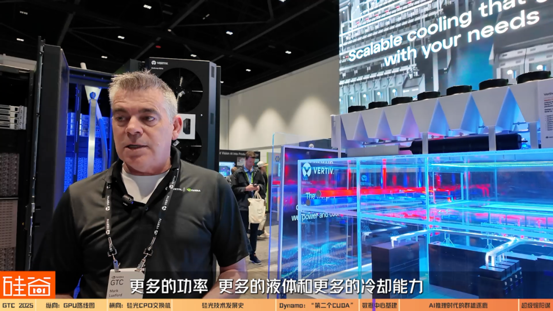 每代产品都这意味着需要更高功率,会需要更强的冷却能力,我们正在响应这一需求,同时确保系统架构和冷却管道能够正常运行,CDU(冷却分配单元)能够扩展以满足新的需求。就比如我们已经把CDU从1兆瓦升级到了2.3兆瓦,这将非常适合Vera Rubin Ultra,能毫无压力地处理600千瓦功率的机架。