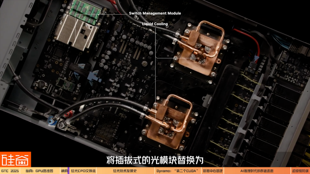 按照英伟达的说法,CPO交换机的创新技术,是将插拔式的光模块替换为与ASIC(专用集成电路)一体化封装的硅光器件。