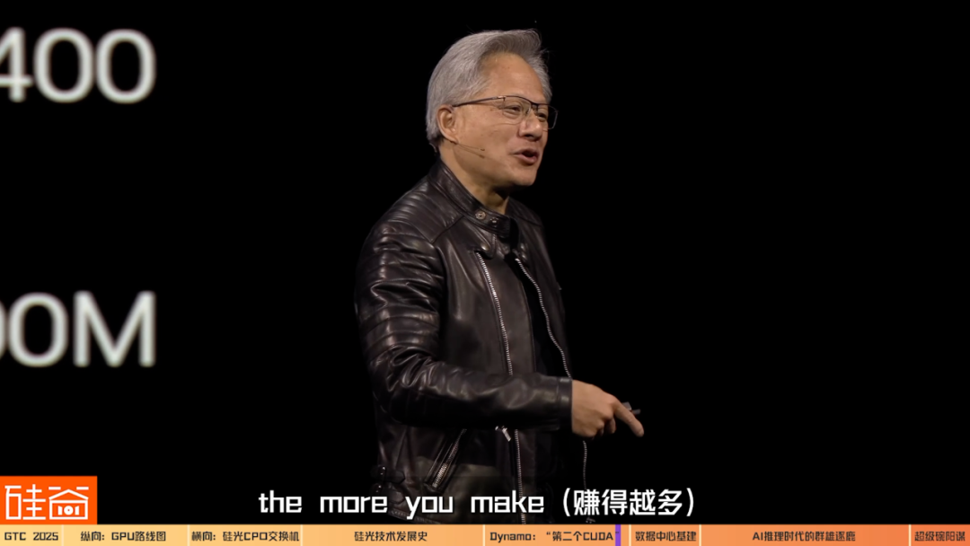在今年的Keynote中,老黄的名句也变了:从“The more you buy, the more you save”(买得越多,省得越多),变成了“The more you buy, the more you make”(买得越多,赚得越多)。