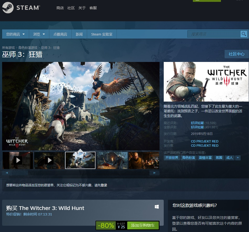 同时,随着Steam在2016年进入中国市场,并正式支持人民币结算,使得国内玩家有了更直接的渠道接触到国外单机大作。而当年steam涌现的知名PC游戏,例如《GTA5》、《巫师3》、《辐射4》等,也大大刺激了国内玩家对单机游戏的渴望。