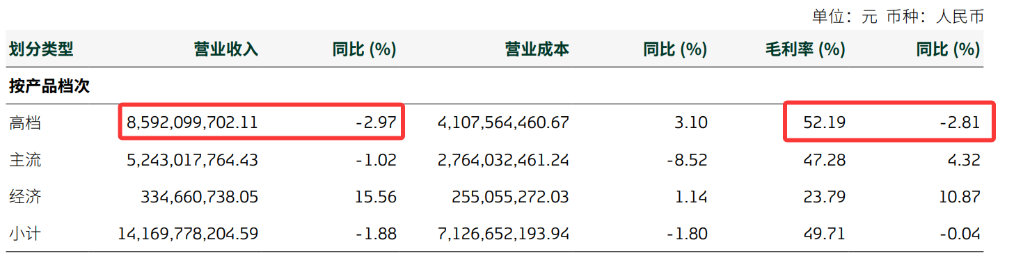 无独有偶,重庆啤酒高档产品销售收入在2024年下滑2.97%,尽管经济产品销售收入增长15.56%,但整体营收仍下降1.15%,被燕京啤酒超越。其毛利率也降至48.57%,同比下滑0.58个百分点。珠江啤酒的高档啤酒产品2024年虽实现销量、营收双位数增长,大单品 97 纯生延续高增长态势,但在激烈的市场竞争中,后续增长动力能否持续尚存变数。